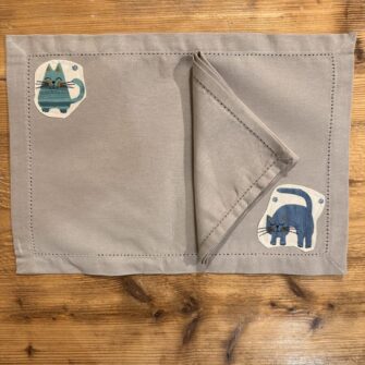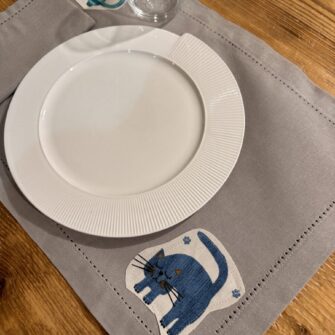 La Tovaglietta Americana Gatti Azzurri è venduta in abbinamento al suo tovagliolo, anch’esso rifinito con orlo a jour. Le stoviglie presenti nelle fotografie hanno il solo scopo illustrativo. L’etichetta con il nostro logo garantisce l’autenticità del manufatto e la qualità della lavorazione sartoriale. A causa della varietà dei soggetti presenti nei tessuti stampati, possono verificarsi lievi differenze nella posizione del motivo da una tovaglietta all’altra, rendendo ogni pezzo unico