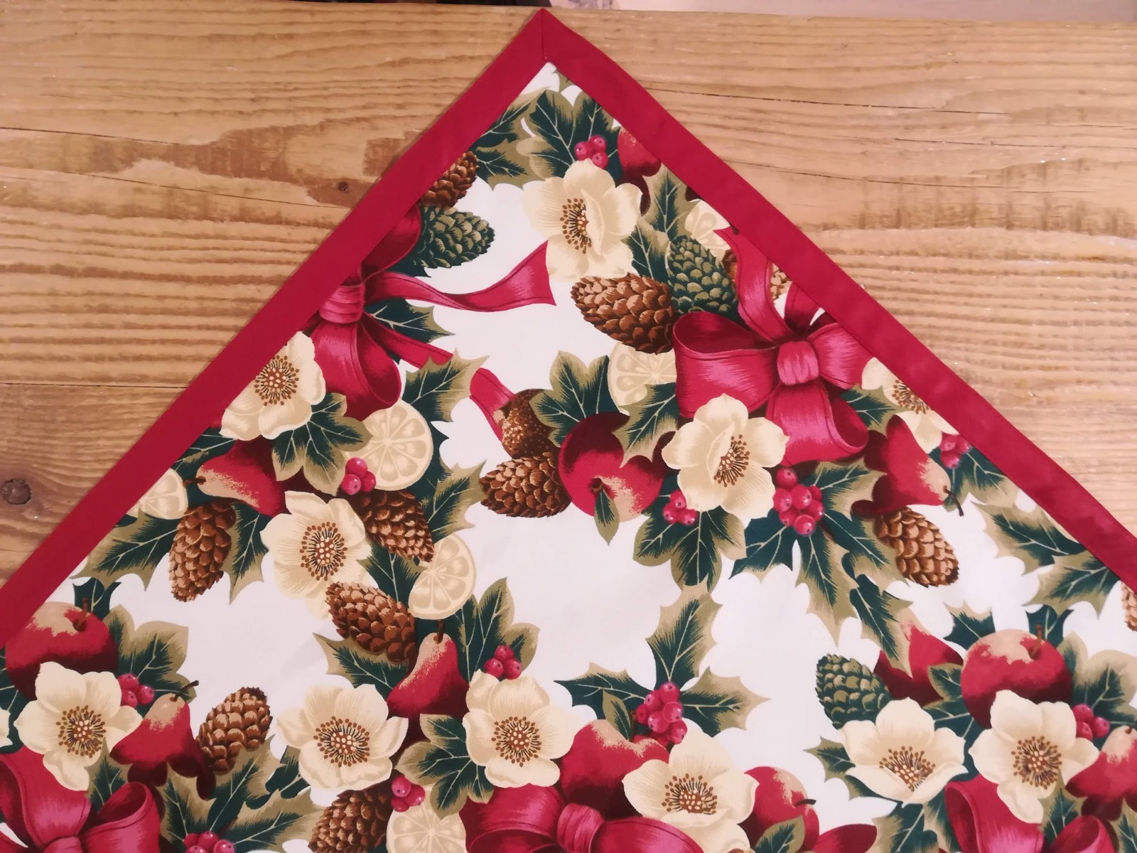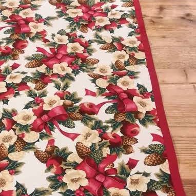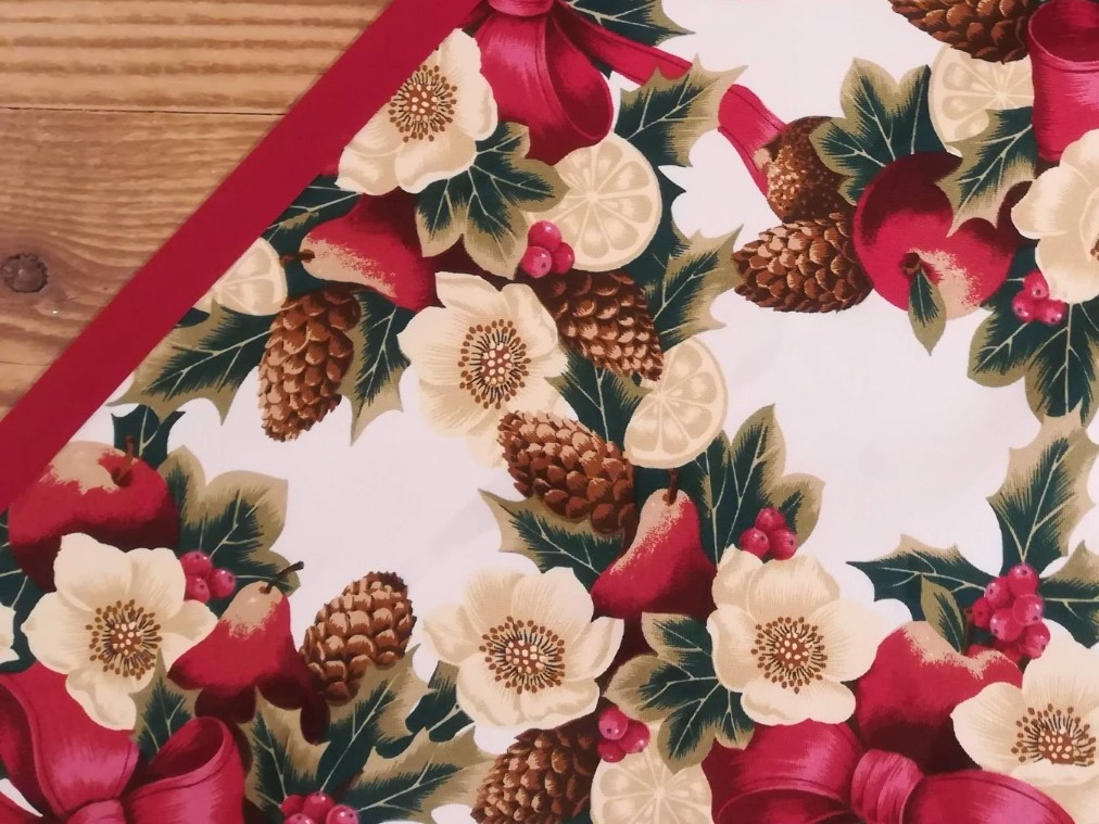 La fantasia decorativa, ricca ma equilibrata, porta sulla tavola un’atmosfera accogliente e stagionale. È una tovaglia che si presta bene a pranzi in famiglia, a cene informali o a momenti conviviali durante le feste, ma può essere utilizzata anche nel quotidiano grazie alla sua praticità. Il bordo in tinta unita coordinata rifinisce il perimetro della tovaglia e ne incornicia il disegno, valorizzandolo senza appesantirlo. Questo dettaglio contribuisce a dare ordine visivo e a rendere il prodotto più curato una volta apparecchiato.
