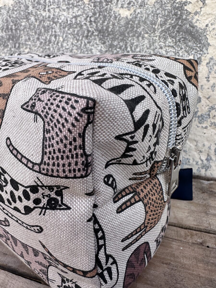 La trousse in tessuto Gatti Tigrati è leggermente imbottita, foderata con un tessuto in tinta unita coordinata e chiusa da una cerniera decorativa che ne esalta il design curato. Ogni modello è realizzato artigianalmente nei nostri laboratori di Brescia, dove la tradizione sartoriale si unisce alla passione per i dettagli, creando accessori autentici e di qualità.