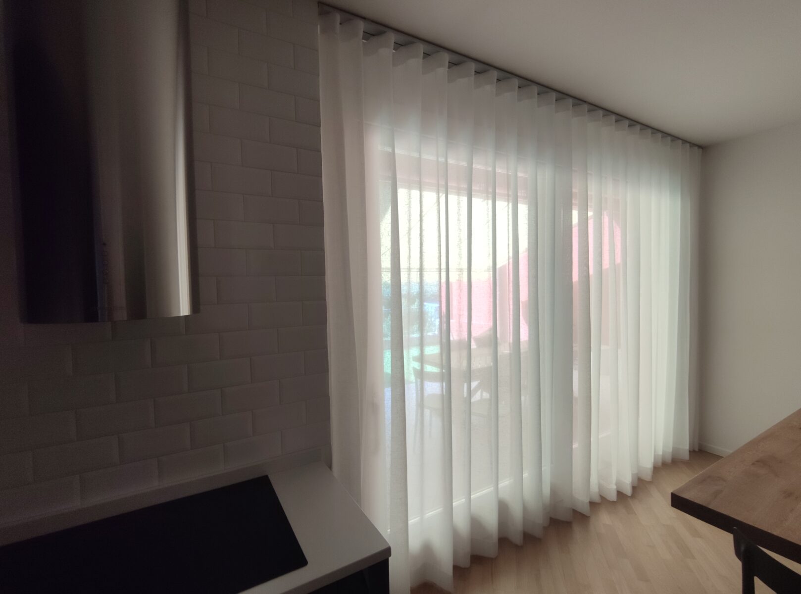 Quando i teli si appoggiano sul pavimento per più di 4 cm e l’effetto è di grande morbidezza, per uno stile romantico. Si tratta di un look davvero raffinato, ma che perde un po’ in praticità. La tenda infatti rischia di sporcarsi o di impolverarsi in fretta, quindi non è indicato per zone come le cucine o i bagni, dove l’uso di prodotti aggressivi può compromettere la resa della tenda.