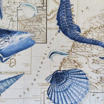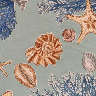 Tenda in Lino Stampato Coralli e Conchiglie cm133Lx280h