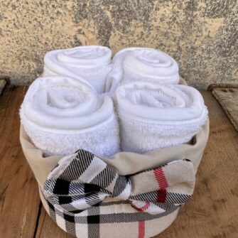Lavette in Spugna con Cestino Tartan Bianco