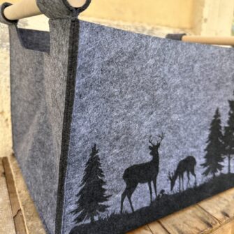 Cesto in Feltro Antracite con Manici in Legno