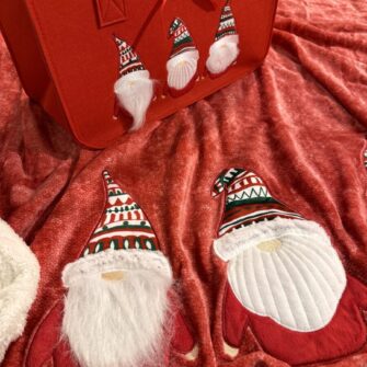 Plaid Gnomi con applicazione ricamata e borsa in feltro