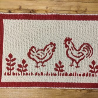 Tappeto Galline: Colori Rosso-Avorio cm 60×100