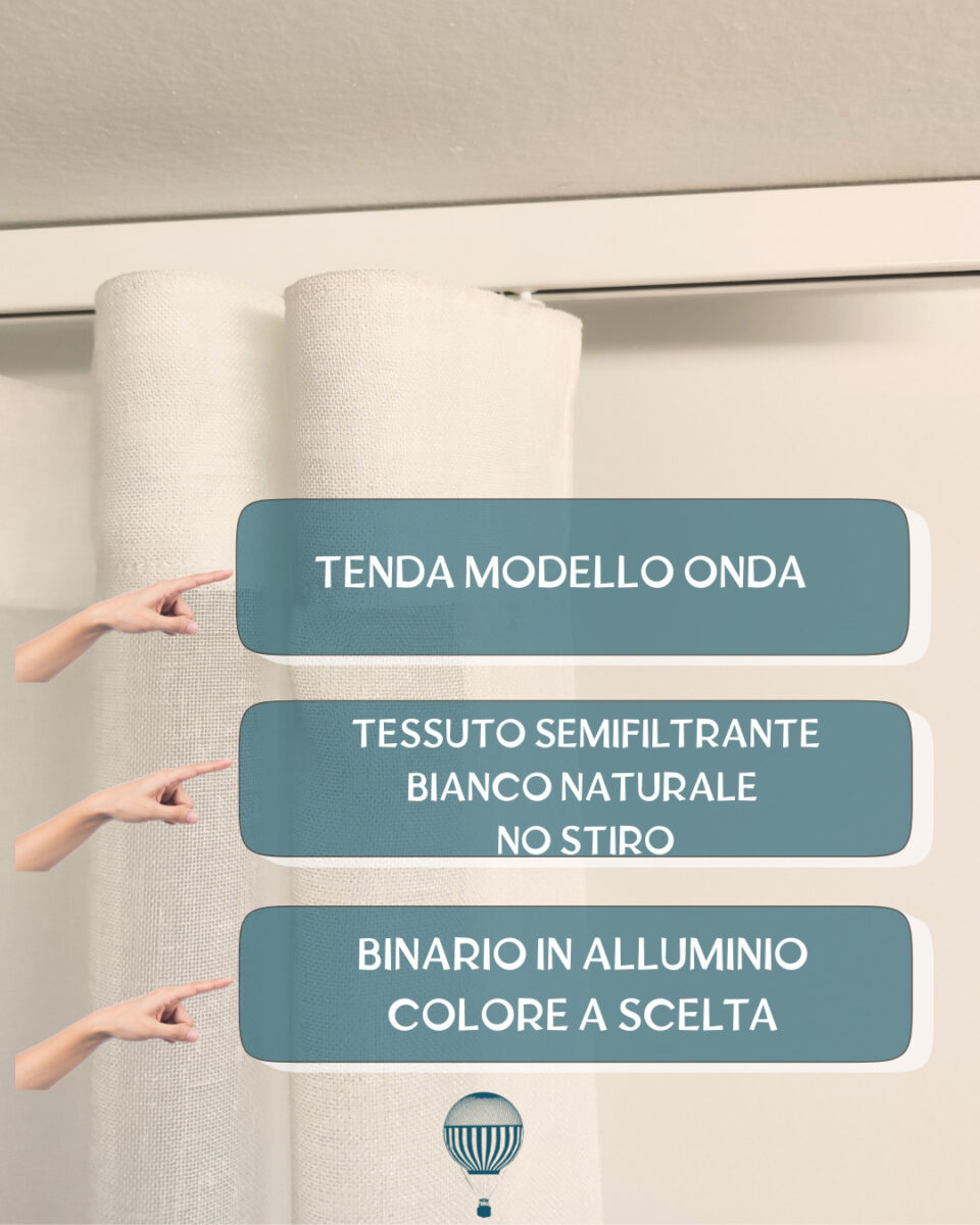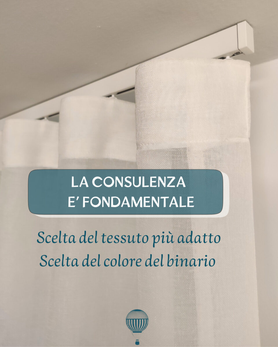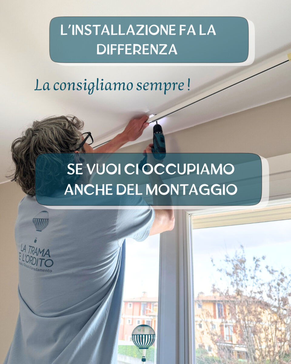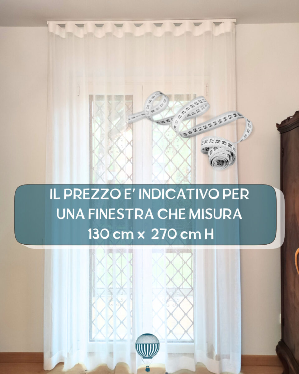Nel prezzo sono inclusi la confezione su misura realizzata nel nostro laboratorio a Brescia e il binario professionale adatto al peso del tessuto.