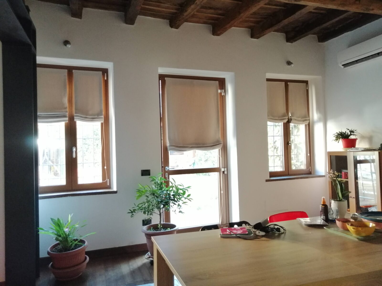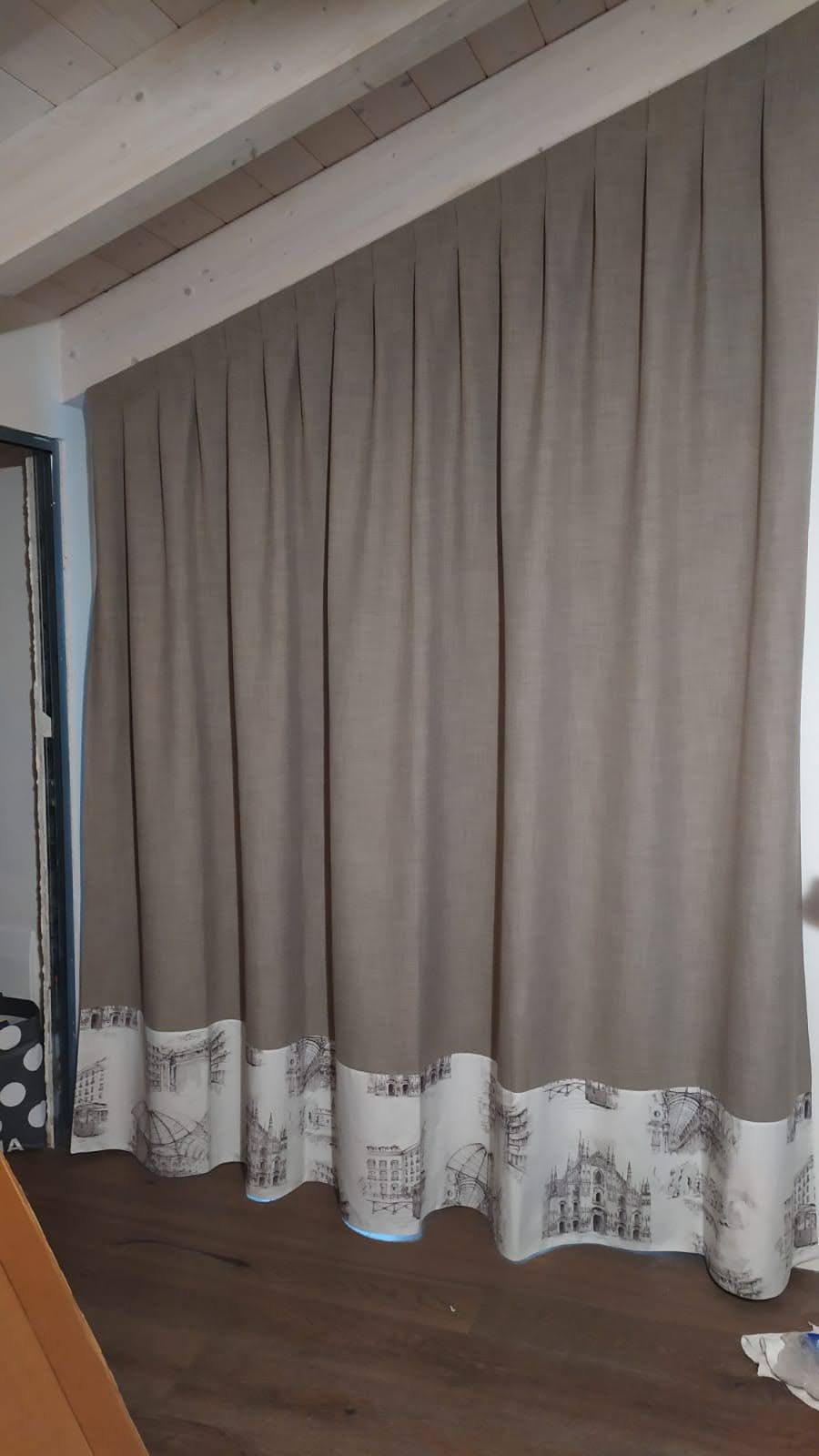 Un’altra accortezza di cui tenere conto è il colore delle pareti del pavimento, del soffitto, dei mobili e persino delle travi. Le tende, infatti, forniscono calore e hanno una reale influenza sull’atmosfera generale della stanza. Da qui l’importanza di scegliere con cura il colore. In generale le tonalità chiare (bianco, crema, beige, grigio topo, ecc.) ingrandiscono le superfici, a differenza di quelle scure (nero, blu navy, verde scuro, etc.).